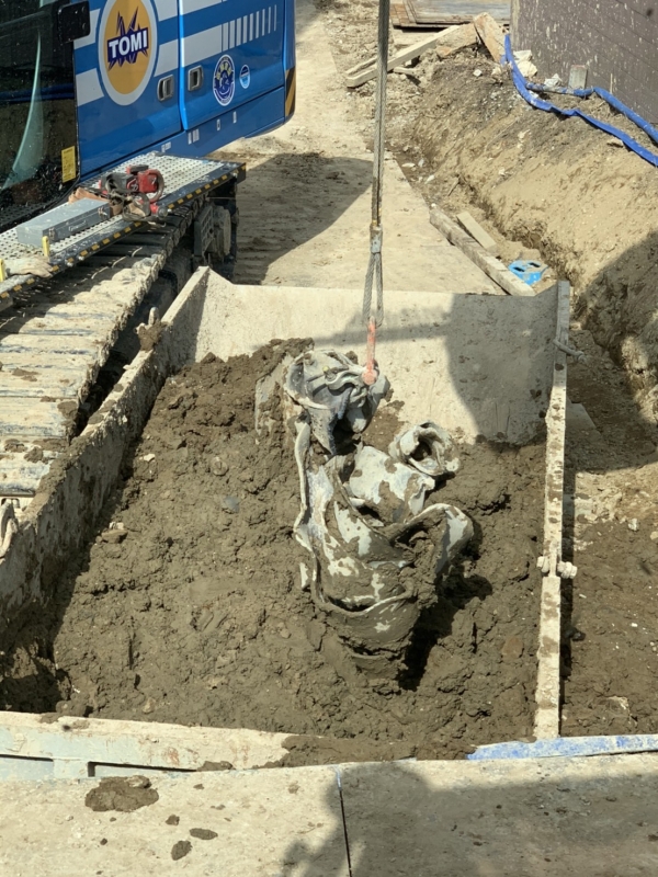 H鋼の地中連続壁撤去を行いました。