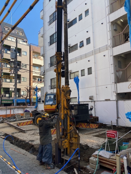 狭小地、壁際施工、地中障害物撤去から打設工事までの一連の流れも対応可能。