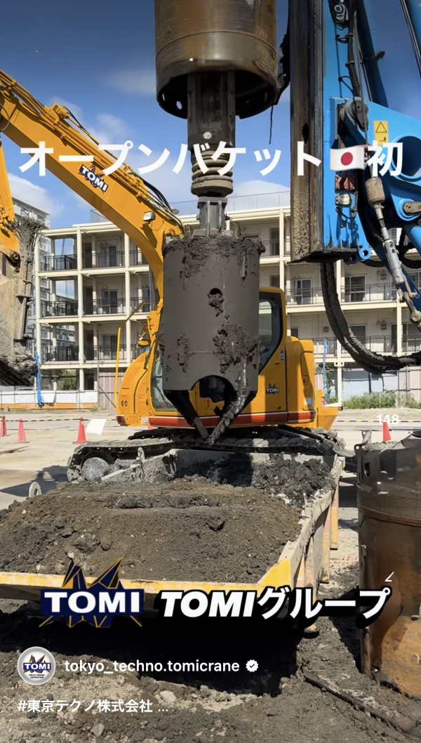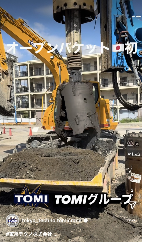 各種ツールスの中で軟弱地盤にはオープンドリリングバケットを使用すると施工スピードが上がる。
