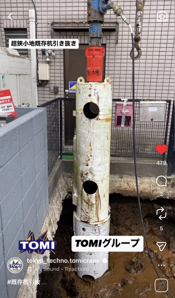 超狭小地既存杭引き抜き